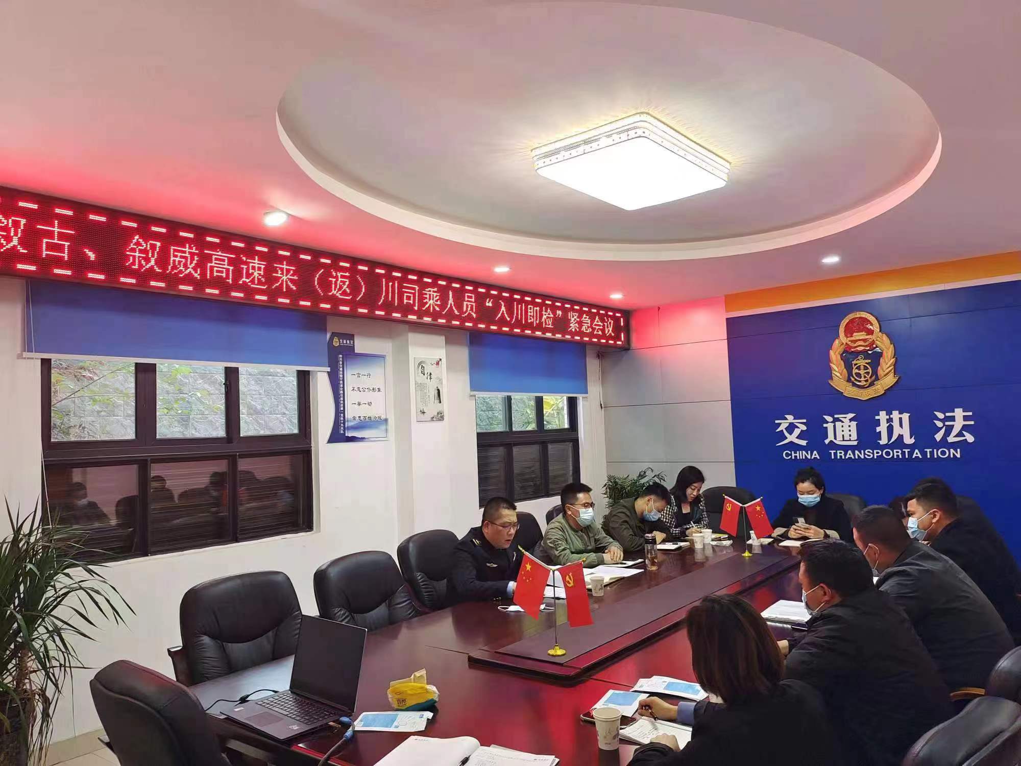 4月15日,四川省交通廳組織召開公路來(返)川車輛司乘人員核酸“入川即檢”試點工作培訓視頻工作會,敘古公司在線上參加會議。同日,敘古公司在高速執法辦公樓一樓會議室召開敘古、敘威高速來(返)川司乘人員“入川即檢”緊急會議,敘古公司相關部門負責人、工作人員,各站、隊、中心負責人,高速公安、高速執法負責人共10余人參加本次會議。會議專題學習了《關于開展公路來(返)川司乘人員“入川即檢”試點工作的通知》(川疫指辦發【2022】41號)文件,詳細布置敘古高速、敘威高速具體工作措施: