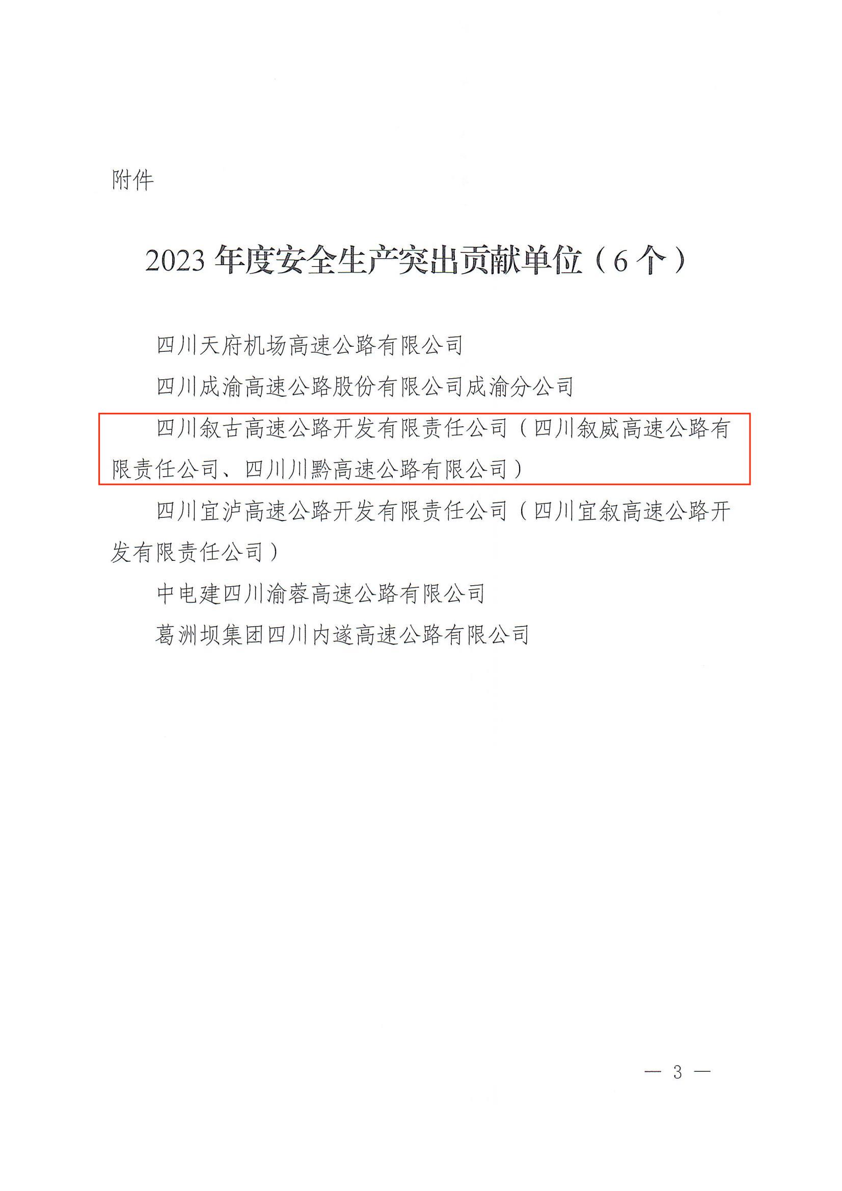 為表揚先進(jìn)、樹立典型,近日,四川省交通運輸綜合行政執(zhí)法總隊第一支隊對轄區(qū)安全生產(chǎn)工作成效顯著、貢獻(xiàn)突出的單位進(jìn)行通報,敘古敘威川黔公司榮獲“2023年度安全生產(chǎn)突出貢獻(xiàn)單位”表彰。