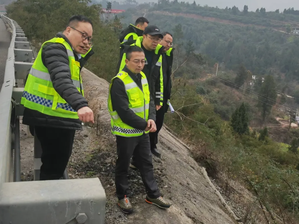 為嚴格落實四川省地災指揮部辦公室《關于切實加強地質災害防治工作》要求和蜀道集團地質災害防治專題工作會精神,2月12日下午,瀘渝公司黨委書記、董事長譚偉帶隊到敘古高速開展地災隱患專項排查,公司黨委委員、職工董事、工會主席、副總經理陳學勤,安全環保部、工程養護部及養護項目部相關人員陪同檢查。