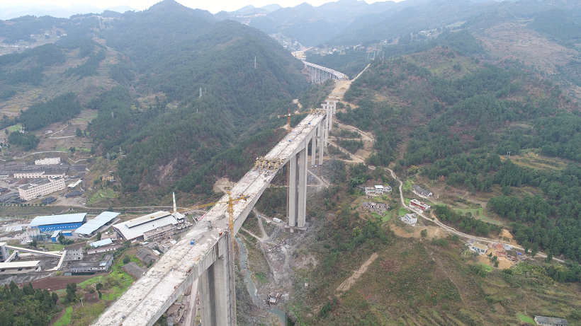 天堂河特大橋位于古藺太平鎮(zhèn)煌家溝村附近,跨越天堂河,大橋左幅全長1044m,右幅全長1084m。該橋由四川路橋集團橋梁公司承建,自2016年6月開工以來,項目建設(shè)團隊宏觀規(guī)劃、微觀把控、科學(xué)籌謀、創(chuàng)新施工,掃除種種障礙,迎來了工程建設(shè)數(shù)個階段性勝利。