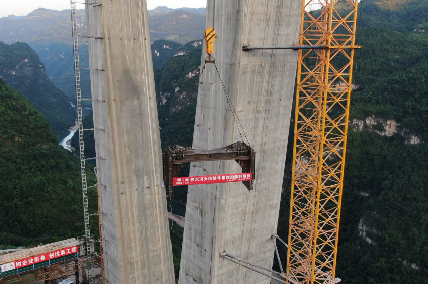 古金高速赤水河大橋首件鋼錨梁順利安裝完成
