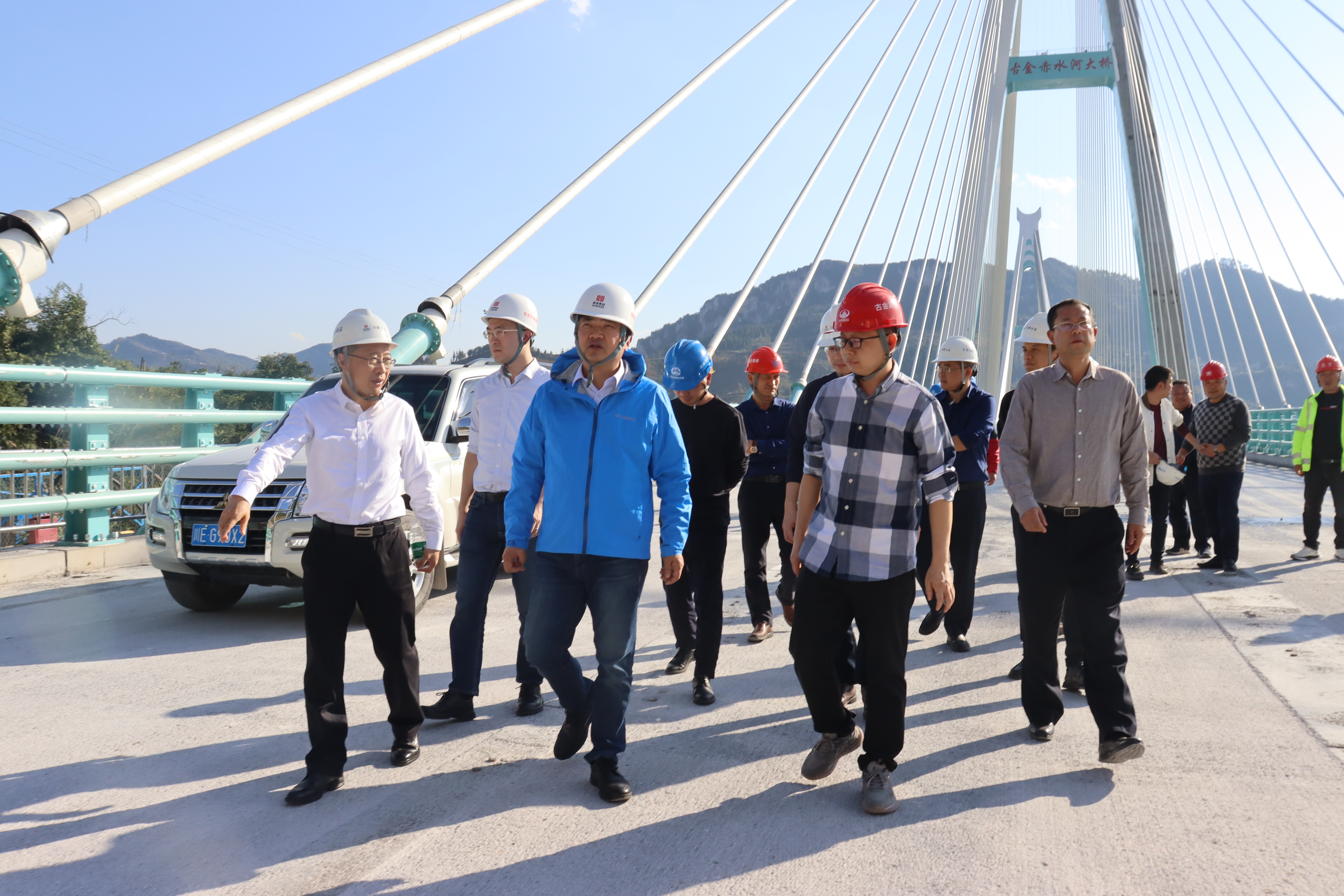 陳光軍一行先后前往古金高速草壩隧道、赤水河特大橋、古藺服務區、水落河特大橋等施工點位,實地查看項目建設情況并聽取匯報,同時針對項目施工的相關設計、工藝、材料、現場管理等問題進行探討,提出優化建議